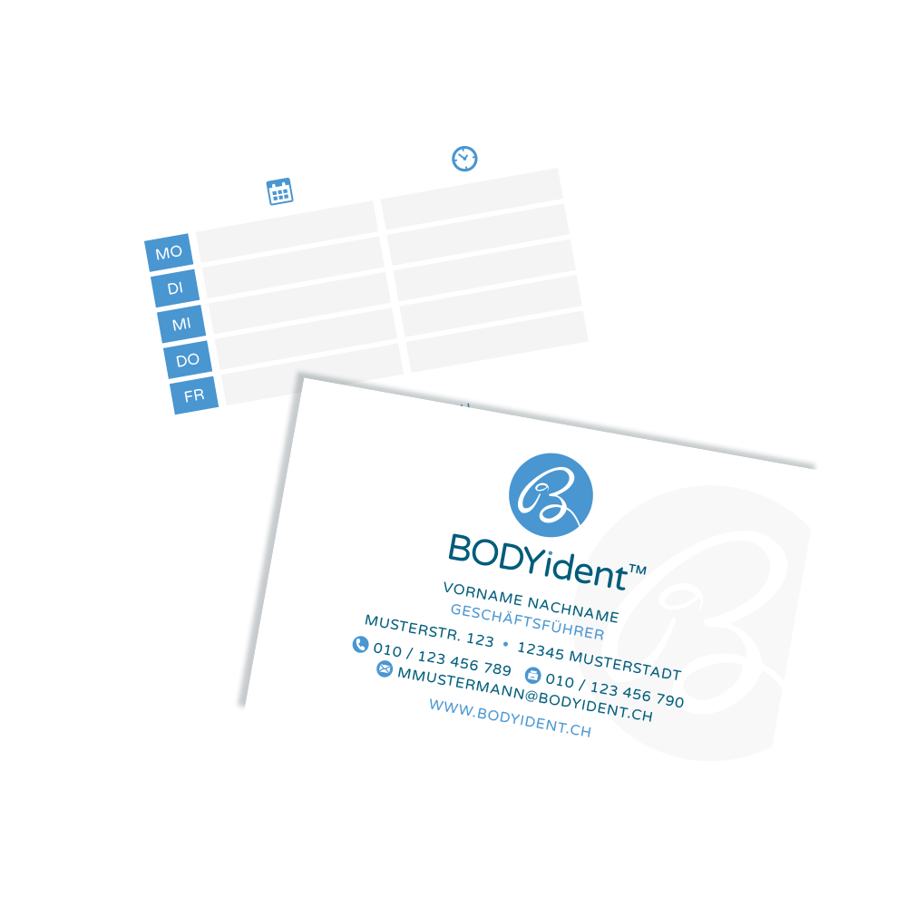 Gestaltung von Visitenkarten und Flyern im einheitlichen Corporate Design.