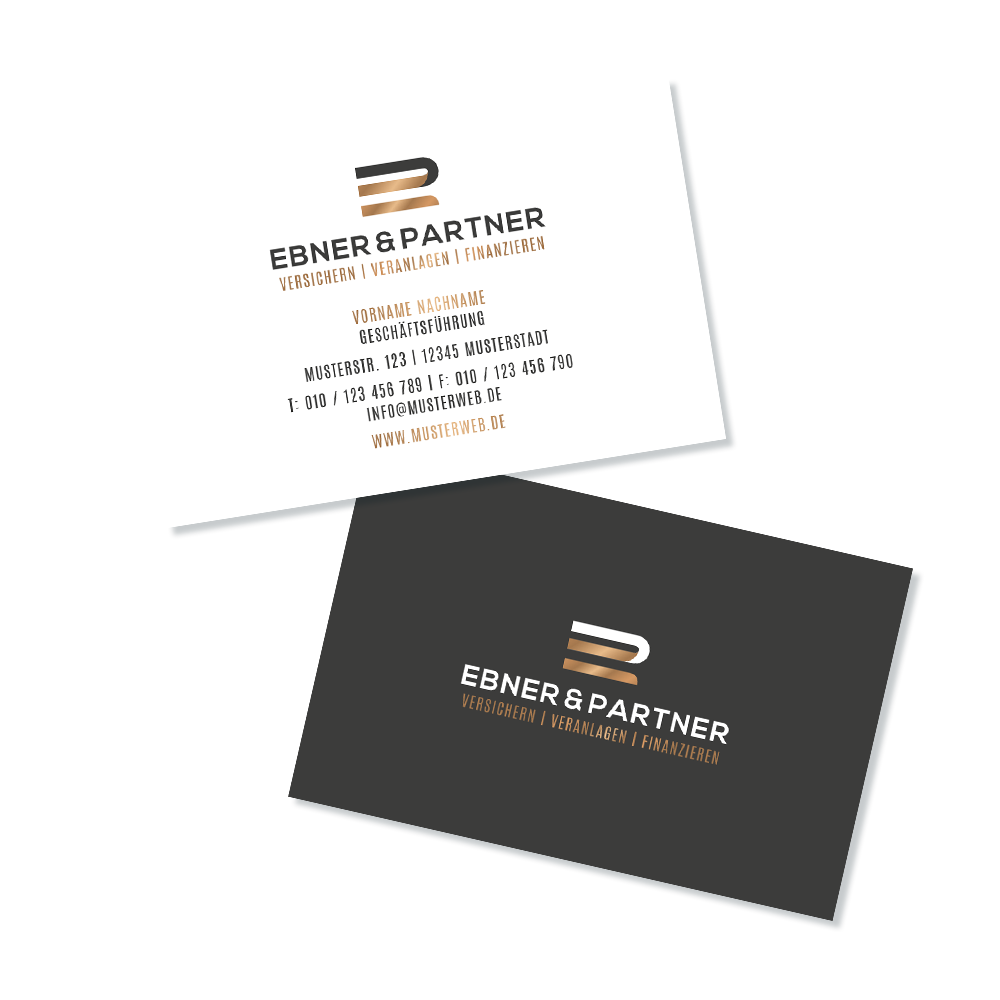 Konzeption und Entwicklung einer Wort-Bildmarke und Visitenkarten-Design für eine Beratungsagentur im Bereich Versicherungen, Vermögensberatung sowie Fiannzierungen.