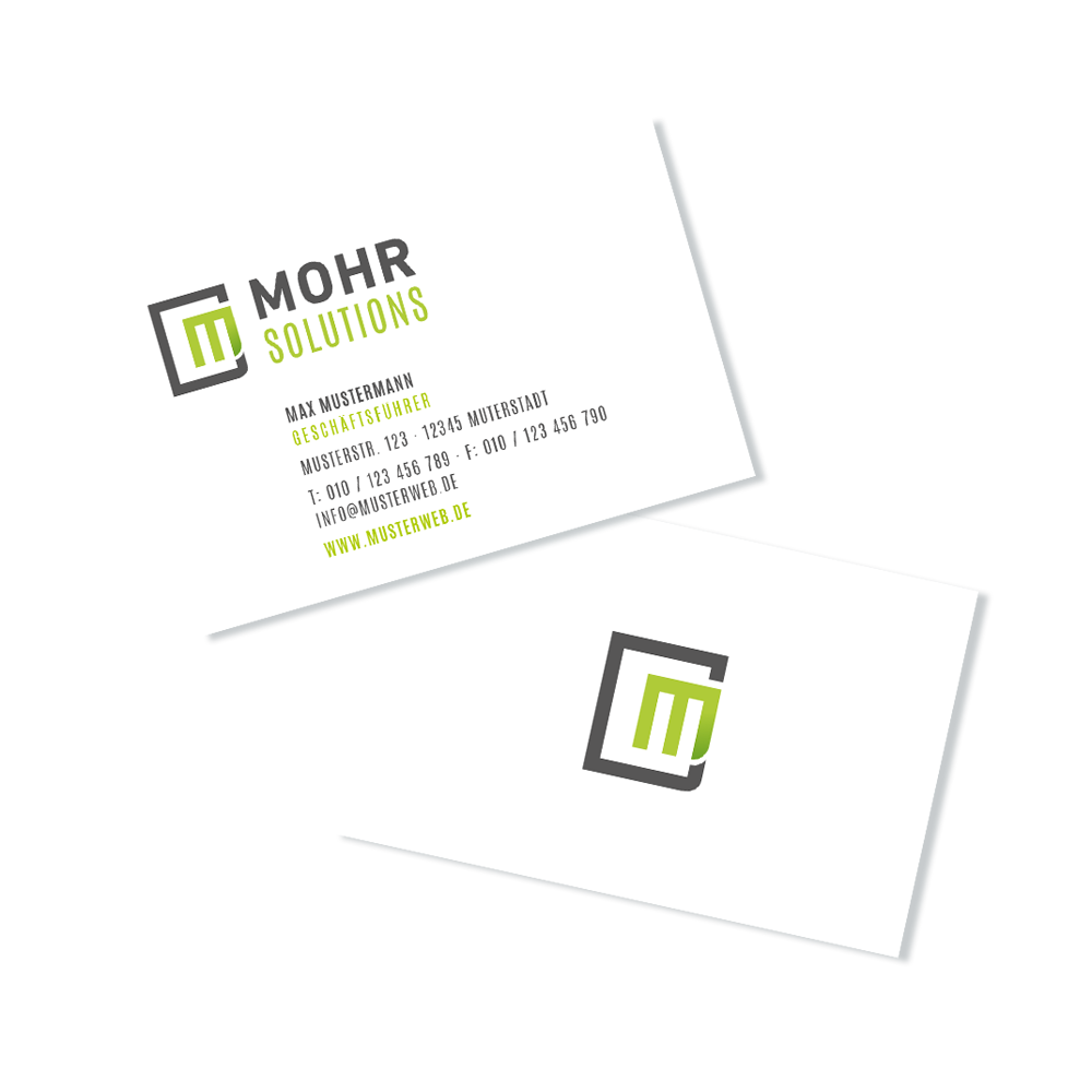 Gestaltung von Visitenkarten, Briefbogen, Imagebroschüre, Kuvert und Flag.
